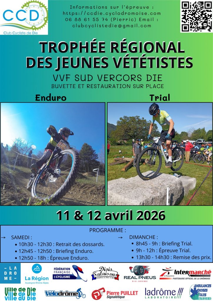 En 2026, le Club Cycliste de Die accueille la 1ère manche du Trophée Régional des Jeunes vététistes, sur le site de Plas (point GPS maps).